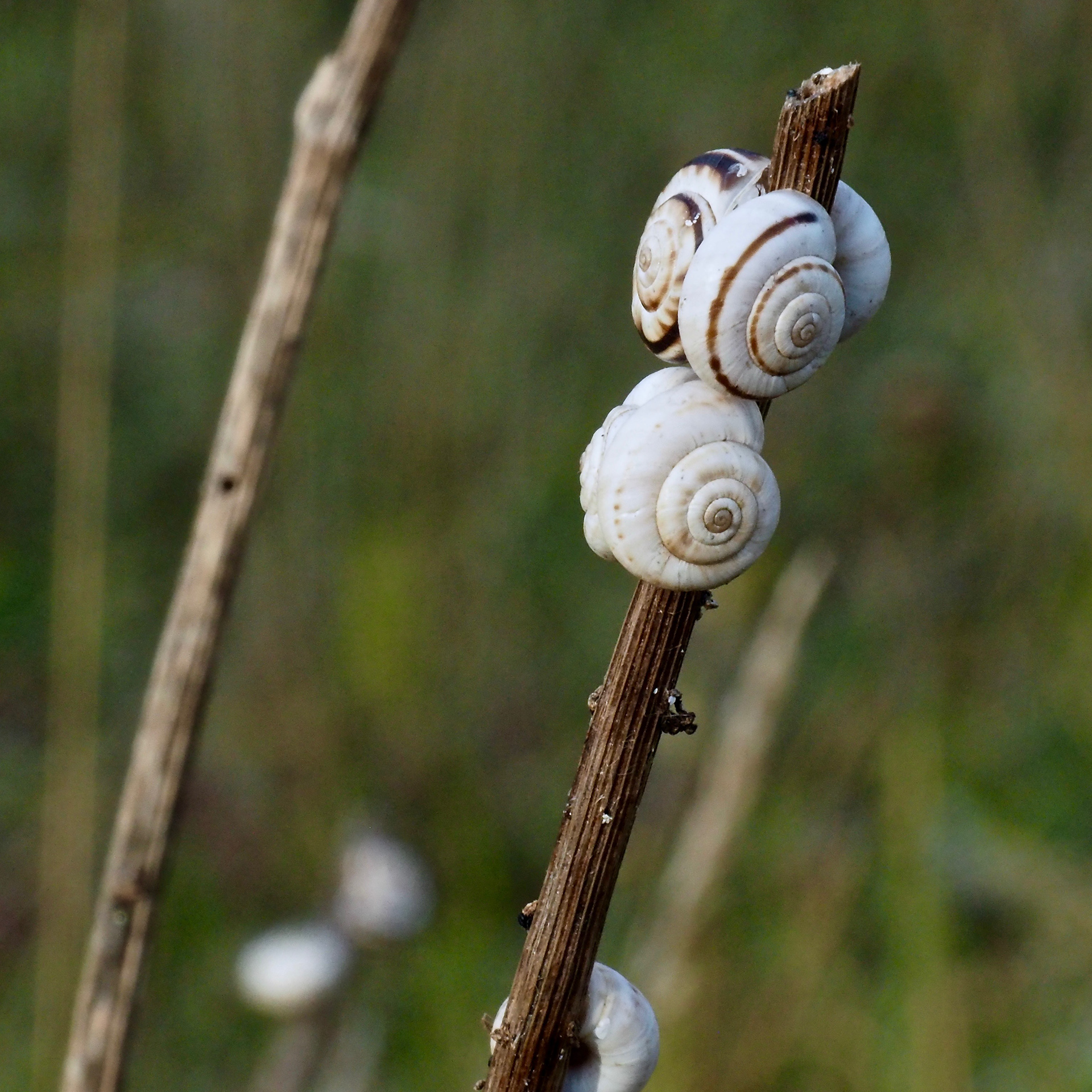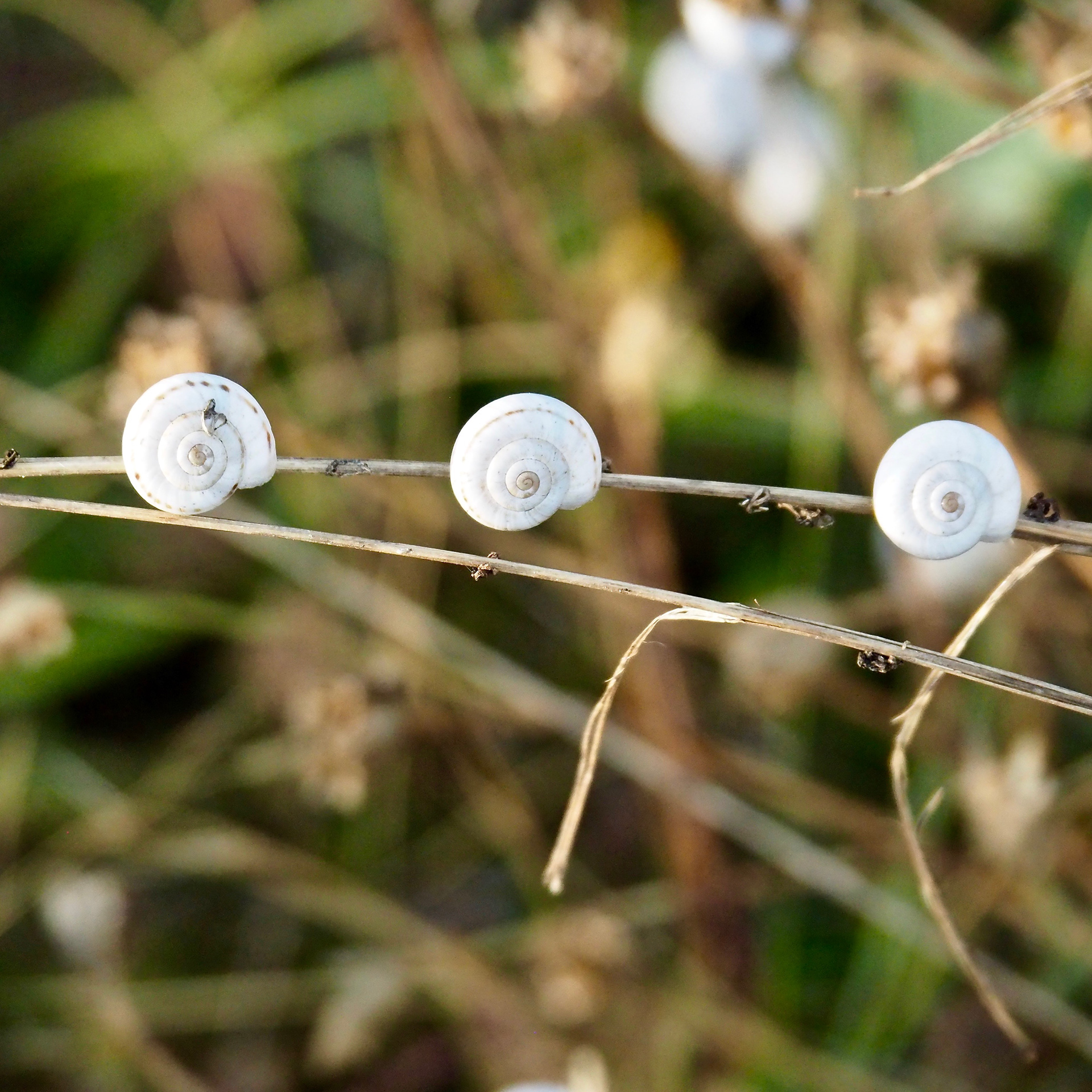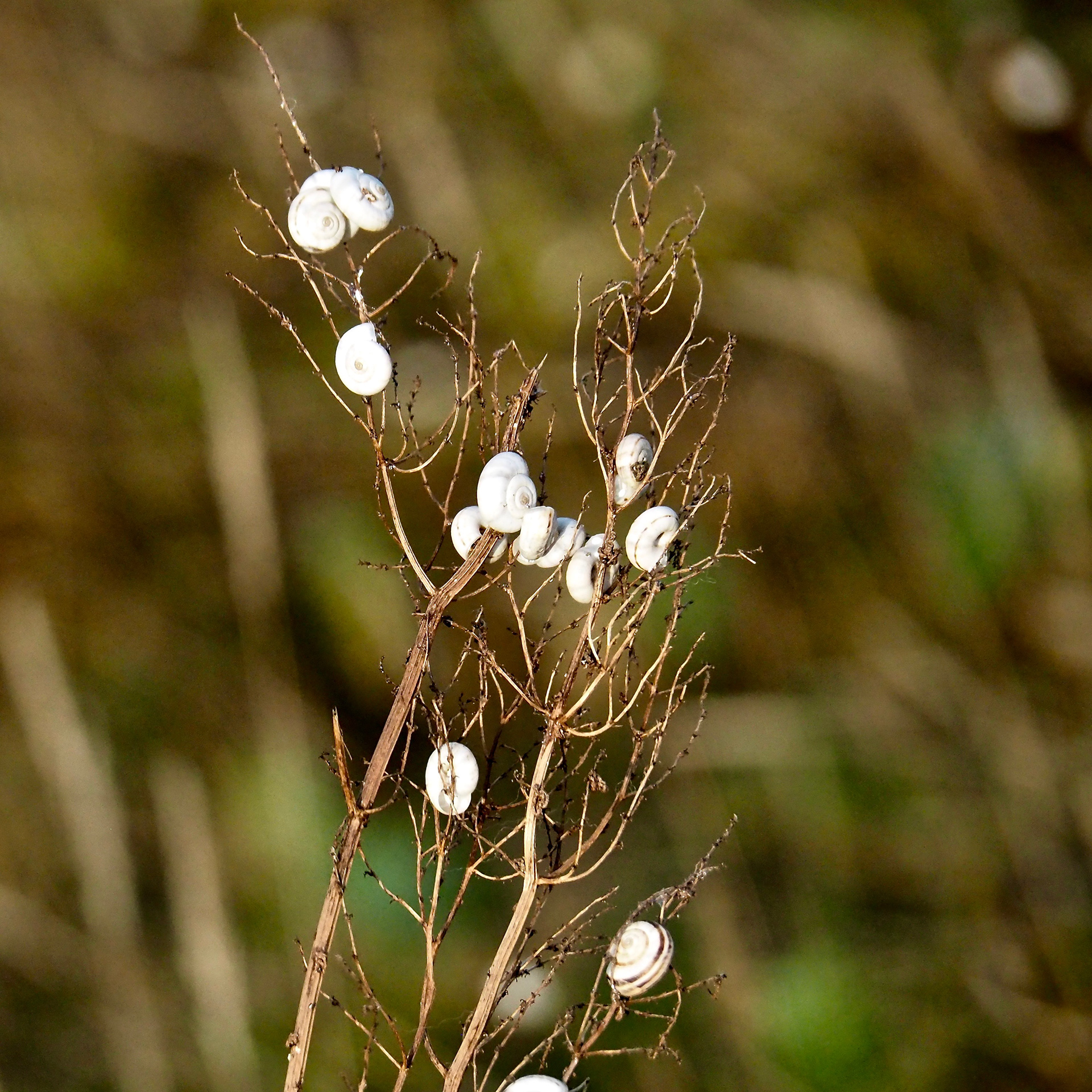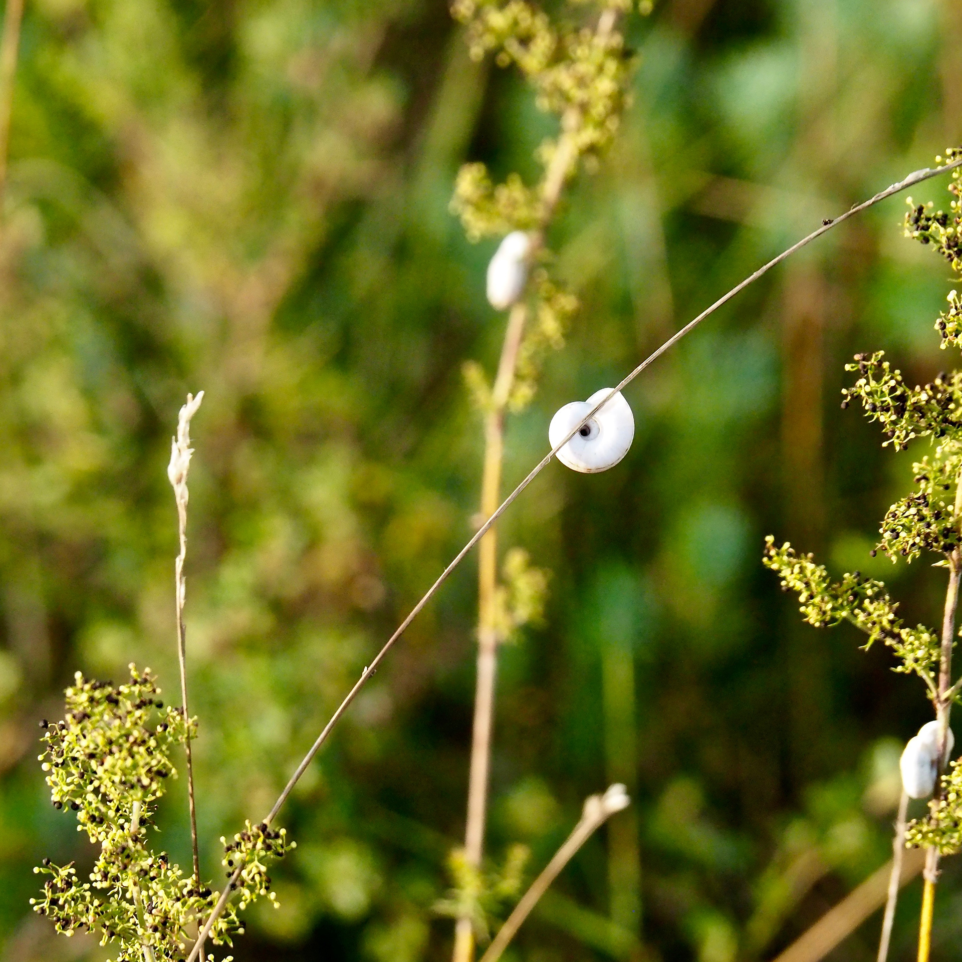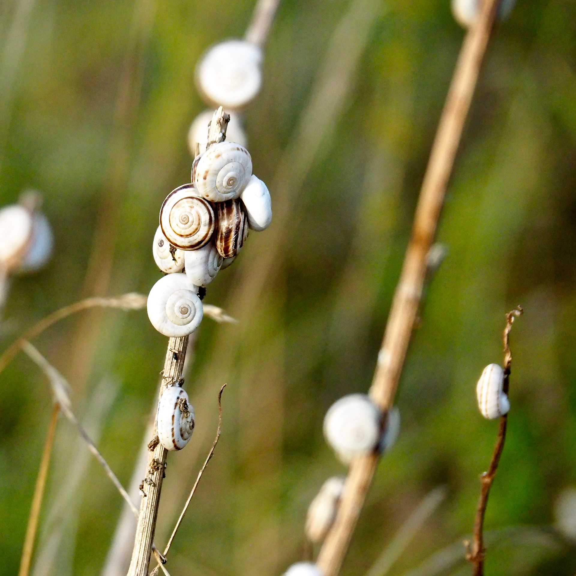 The other day I discovered this strange plant, snails pretending to be flowers.